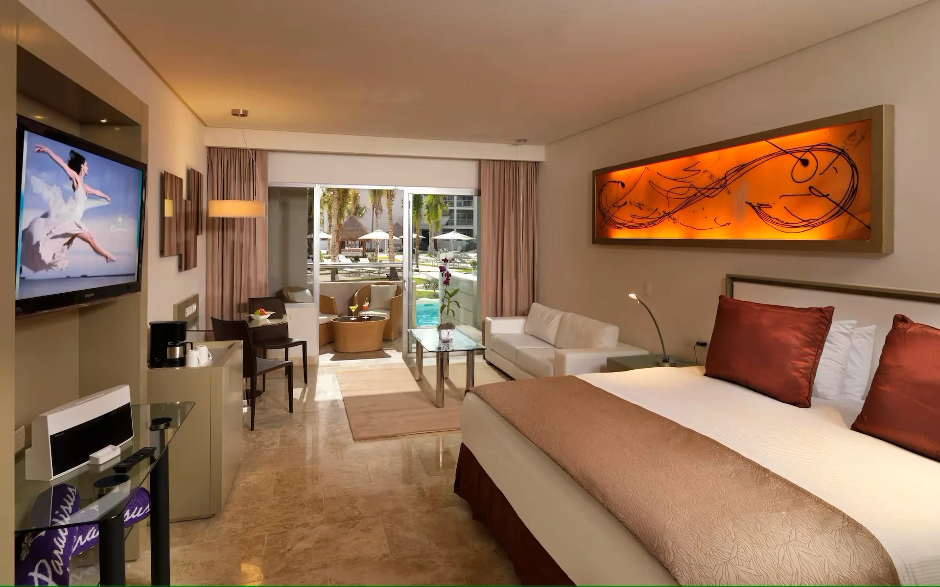 Paradisus, like most resorts, does not guarantee bed sizes in some rooms, they are upon request only; please contact us if you would like to request double beds. The earlier you book, the more likely you are to get your requested bed type.