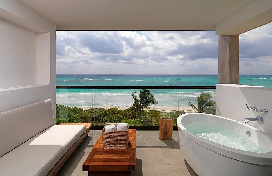 Perfectly situated closest to the ocean are some of the most intimate, spacious and bright rooms, boasts an outdoor hydro spa tub and exterior lounging area that offers a relaxing nook to take in the landscape.