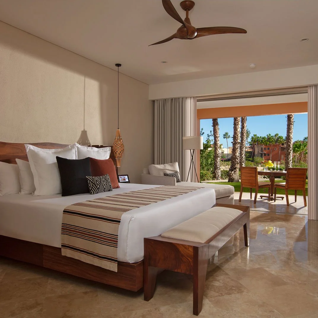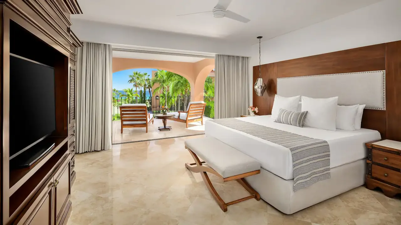 Enjoy beautiful Sea of Cortez views from your private terrace or balcony in this 450 sq. ft. room. It features a spacious king bed, a rain shower, and soft linens with aromatherapy pillows for a relaxing stay together.