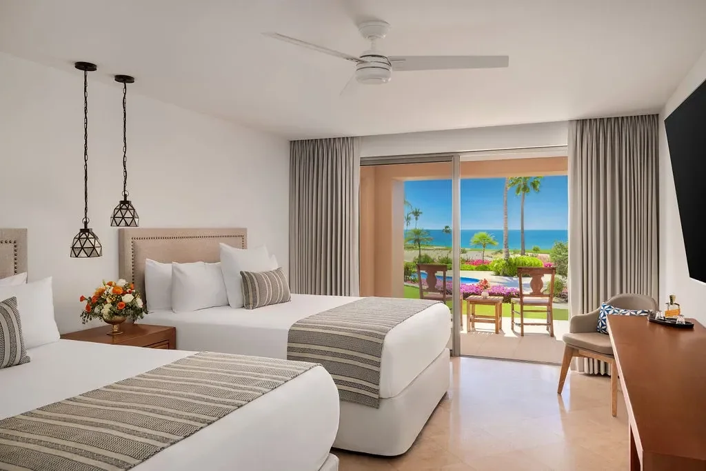 Wake up to oceanfront views of the Sea of Cortez in this 515 sq. ft. room with a generous private terrace. Two comfortable queen beds with aromatherapy pillows and soft linens, along with a refreshing rain shower, make it a wonderful space to relax and celebrate together.
