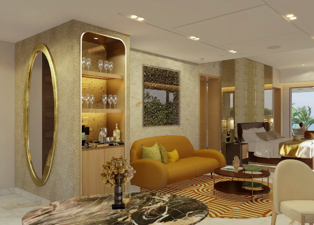 Where space meets sophistication, the Sanctuary Corner Suite with 1,655 sq ft offers elevated design, exceptional comfort, and a atmosphere of quiet indulgence. This suite features stunning panoramic views from a private terrace with a Jacuzzi, the perfect setting to unwind in total privacy