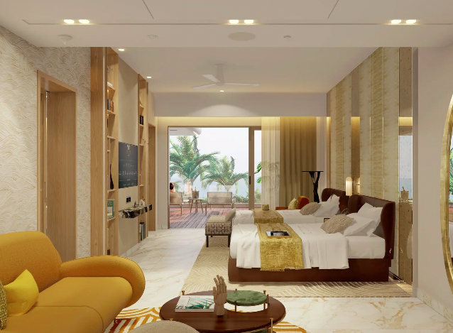 The spacious 1,152 sq ft Sanctuary Junior Suite Queen is a perfect blend of elegance and comfort, featuring two queen-sized beds and a private balcony with breathtaking views, complete with a Jacuzzi on the terrace for ultimate relaxation. Thoughtfully designed for families or friends, this suite offers spacious interiors and luxurious amenities.